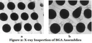 另一個(gè)非常常見(jiàn)的問(wèn)題是BGA連接的“爆米花”。 當(dāng)BGA的變形增加時(shí),它會(huì)導(dǎo)致某些焊球在焊接過(guò)程中合并在一起,從而導(dǎo)致組件的“爆裂”,如圖3所示。當(dāng)X射線檢測(cè)完成時(shí),這很容易找到。 這里需要注意的是,這種影響可能不容易通過(guò)光學(xué)檢查來(lái)檢查,因?yàn)檫B接的爆裂可能在包裝的中心并因此從側(cè)面看不見(jiàn)。 因此,X射線檢測(cè)為BGA裝配工藝增添了非常有價(jià)值的優(yōu)勢(shì)。