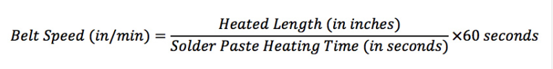 對(duì)于您正在考慮的每個(gè)烤箱,將加熱長(zhǎng)度(以英寸為單位)除以建議的總加熱時(shí)間(以秒為單位)。 然后乘以60秒以獲得皮帶速度(英寸/分鐘),您需要實(shí)現(xiàn)該輪廓: