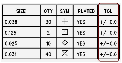如果您的孔公差為零(請(qǐng)參見下文),那么Advanced Circuits將假定您沒有使用我們的默認(rèn)孔公差。 上面列出了我們的默認(rèn)孔公差。